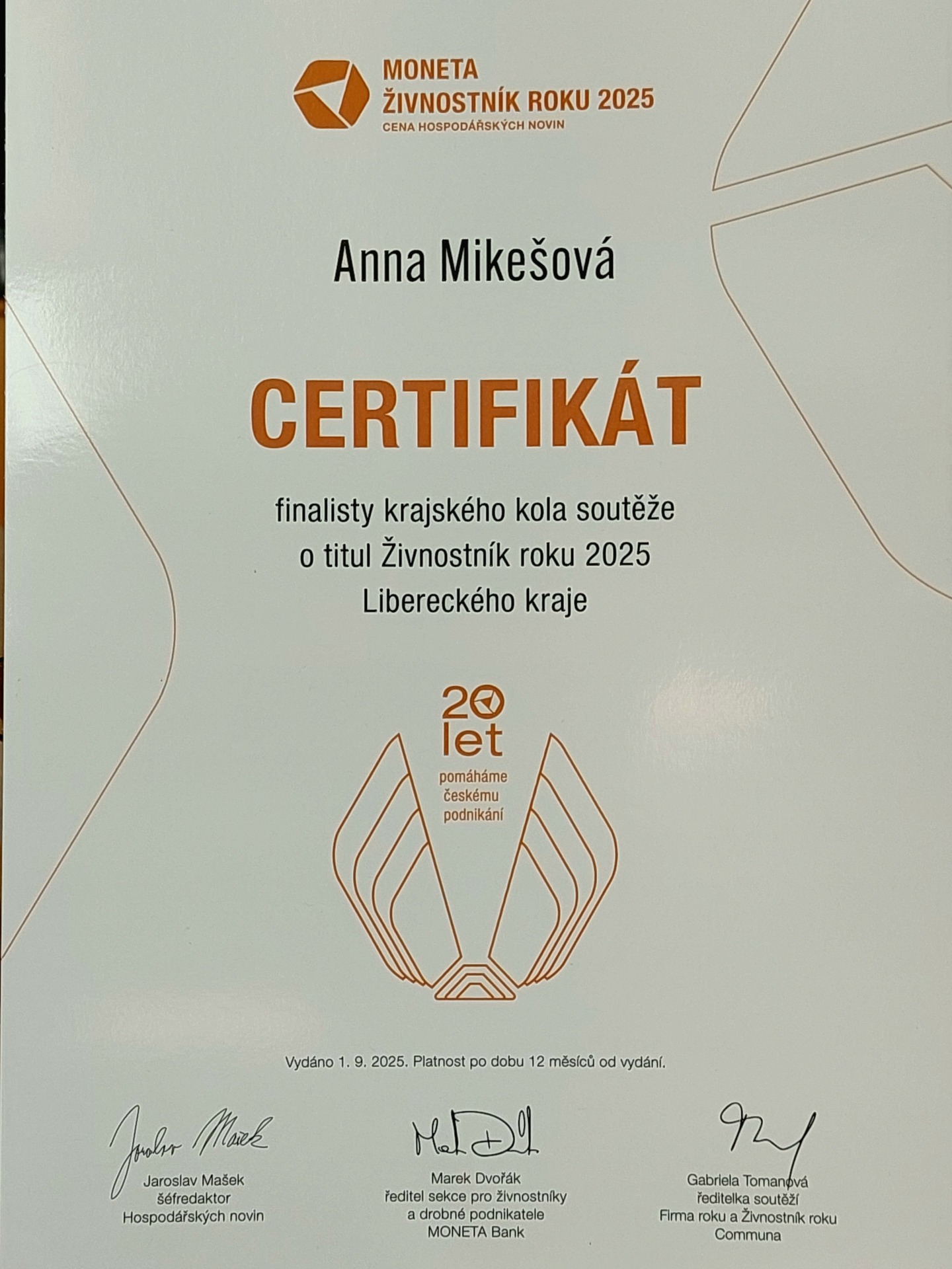 Ve středu jsem se ocitla ve společnosti velice úspěšných lidí z Libereckého kraje, kde jinde než přímo v luxusním hotelu v Liberci. Nejspíš muselo jít o nějaké nedorozumění, ale pobavilo. Asi před půl rokem jsem vyplnila přihlášku do soutěže Živnostník roku a Firma roku. A jsem na sebe hrdá, že mě vybrali mezi deset nej roku 2025. Zrovna letošní rok byl pro mě asi nejhorším od počátku, tedy po deseti letech podnikání. Důvodem k přihlášení byla spíš nuda a zoufalství než motivace.