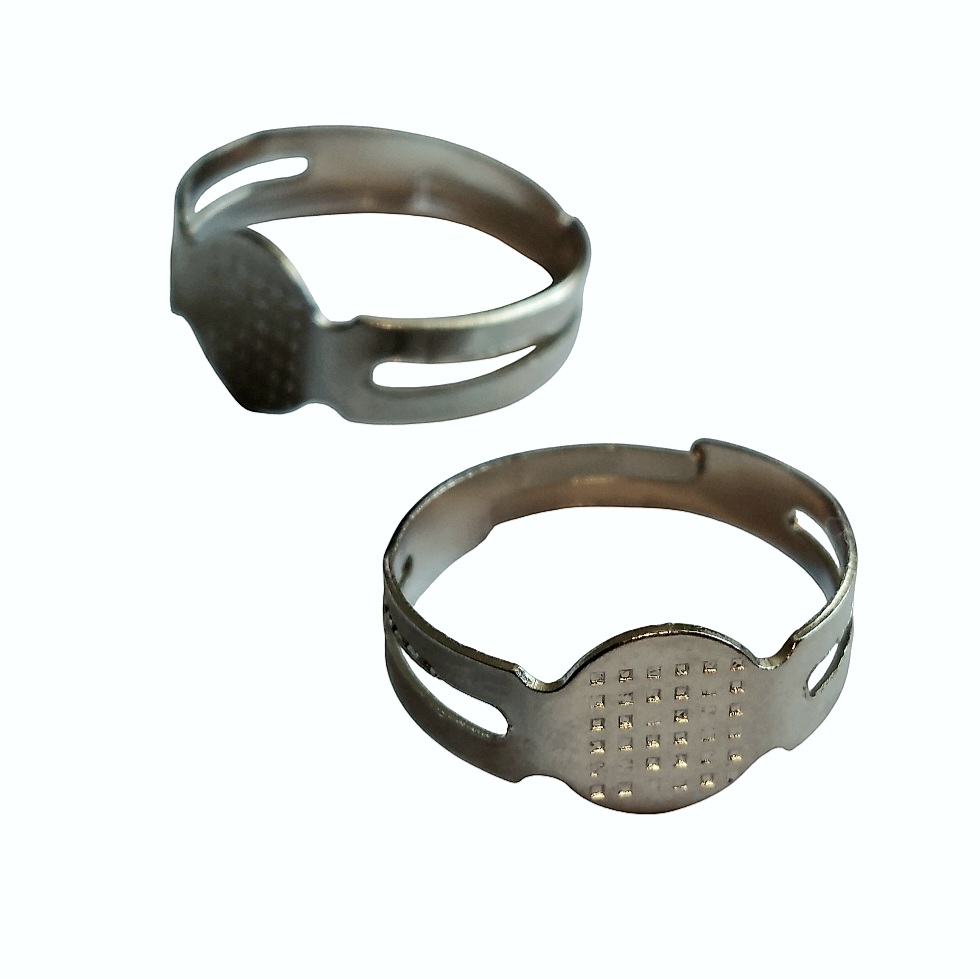 Pevný kovový základ na prstýnek je ideální pro tvorbu vlastních originálních šperků. Obsahuje plošku pro snadné nalepení vašeho komponentu, korálku nebo kabošonu.