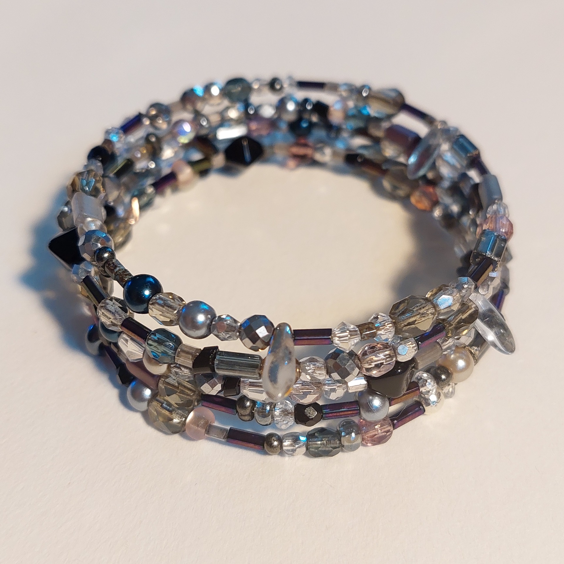 Kombinace drobných broušených a rokajlových korálků dodává šperku jemný lesk a hloubku, díky čemuž se stává nepřehlédnutelným doplňkem pro každodenní nošení i výjimečné příležitosti.