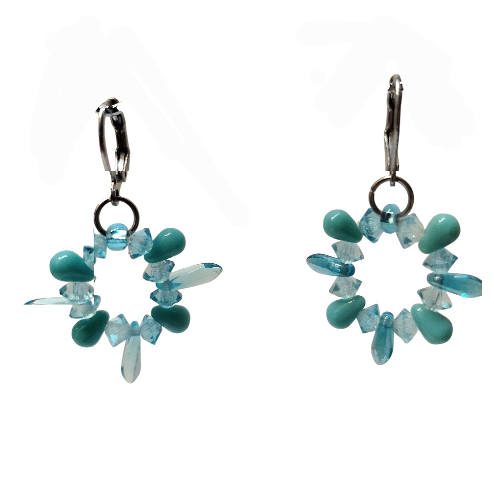 Tyto originální náušnice jsou ručně vyrobené z drobných broušených korálků, které jsou pečlivě navlečeny na jemný vlasec. Jejich výroba je velmi pracná, což se odráží v jejich jedinečném a efektním vzhledu.