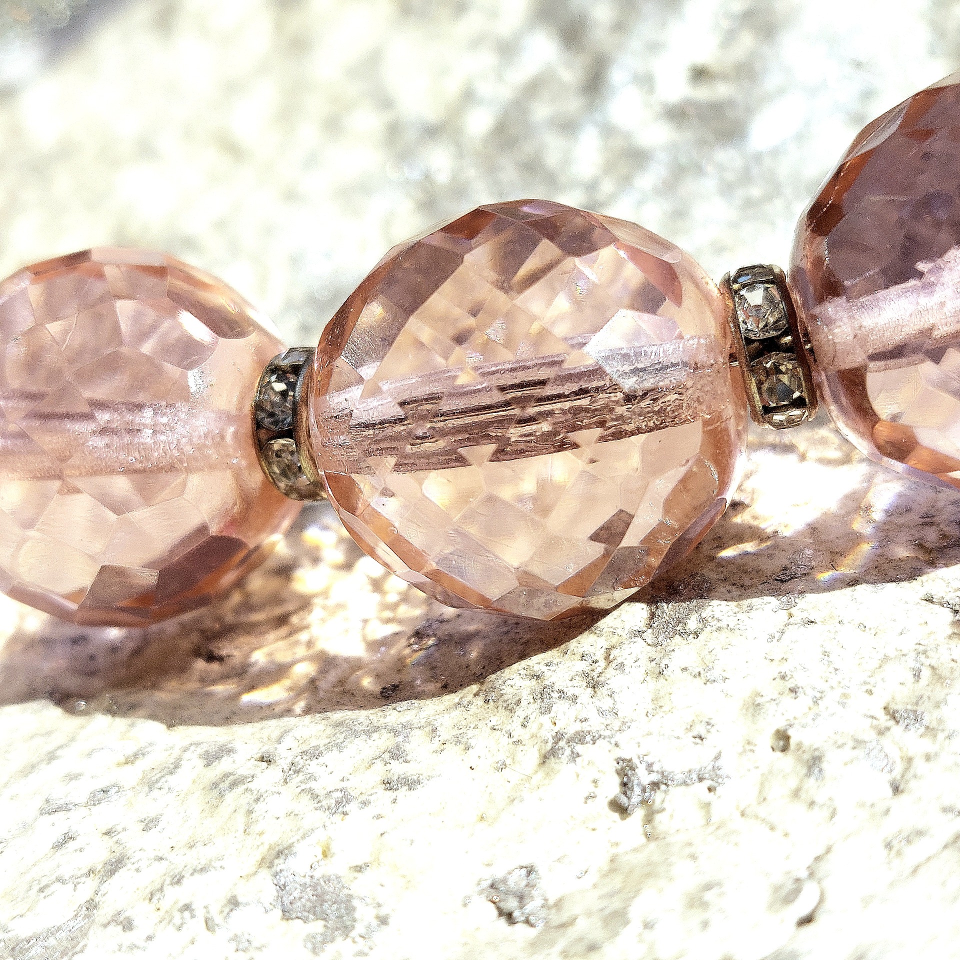The centerpiece of this romantic necklace is a set of five softly pink, faceted maxi pearls (20 mm) that unfold symmetrically from the center, forming the heart of the entire composition. Their delicate hue creates a romantic accent against the base material, turning the necklace into a true eye-catcher.