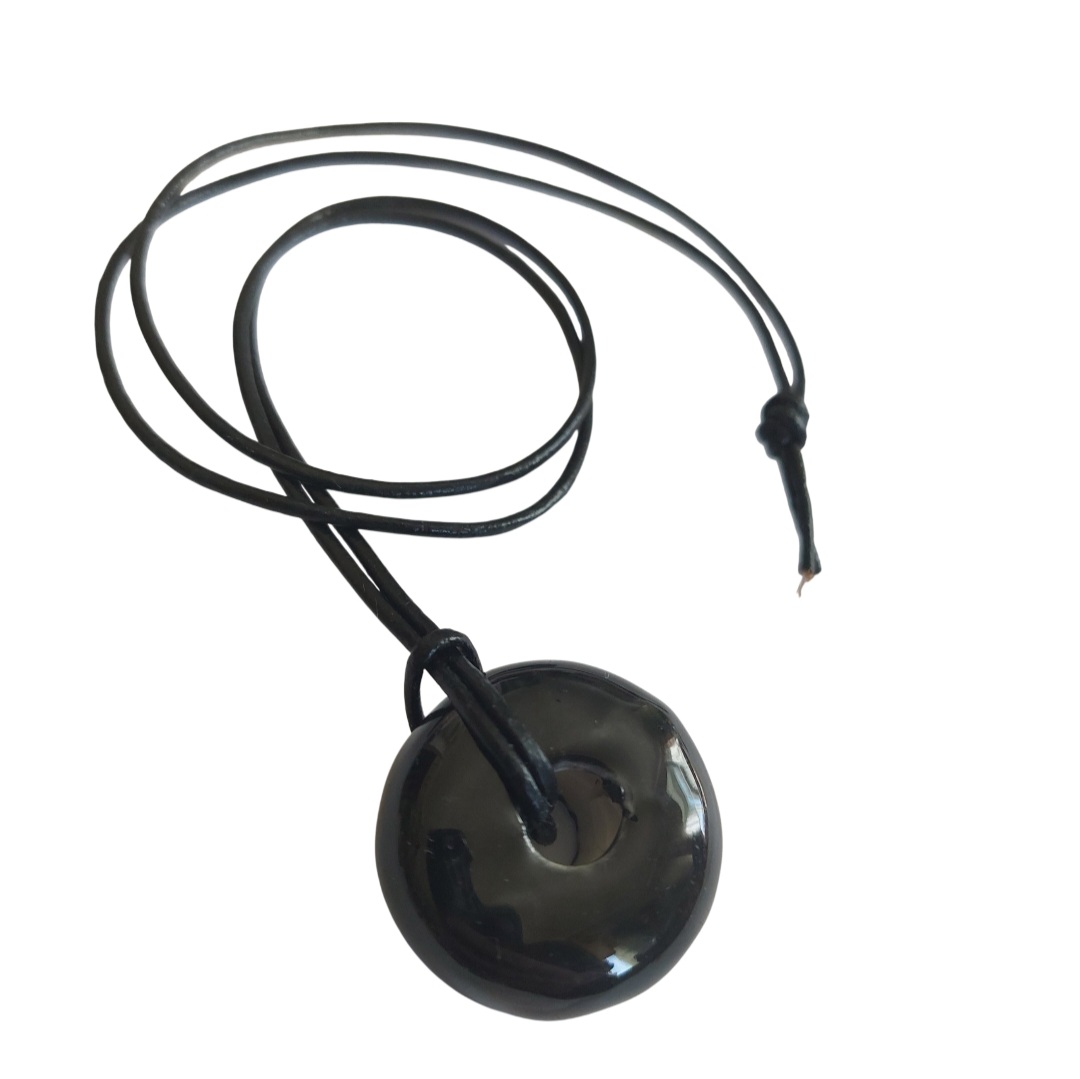 Černý přívesek na kůži rondelka